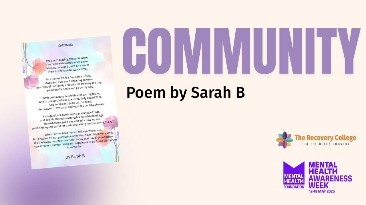 The Recovery College are excited to release the next video in our 10 Years of The Recovery College series. Meet Carolyn Green, Chief Nursing Officer and Deputy Chief Executive of Black Country Healthcare NHS Foundation Trust. We asked Carolyn a few questions about The Recovery College, the value it brings to the black country community and Black Co...