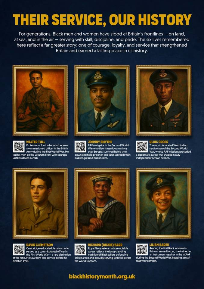 Scan the QR codes on the poster below to hear the stories of Black Men and women who have stood on British Frontlines.
