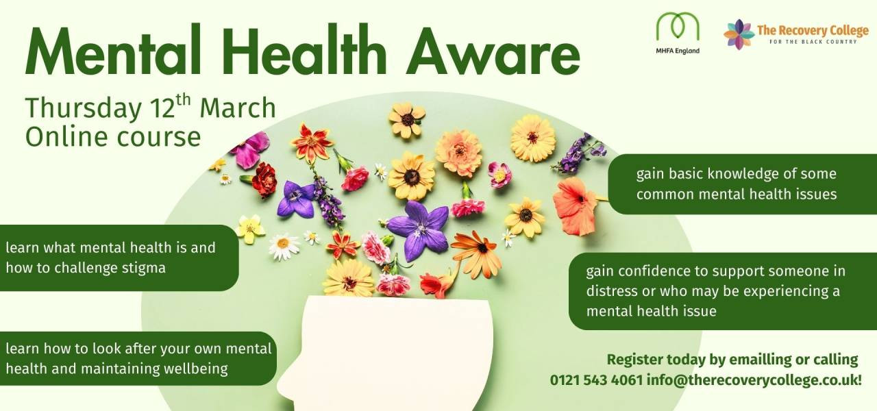 Mental Health Aware is a course created by Mental Health First Aid. In this 4 hour (half a day) course you will - learn what mental health is and how to challenge stigma, gain basic knowledge of some common mental health issues, learn how to look after your own mental health and maintaining wellbeing and much more!