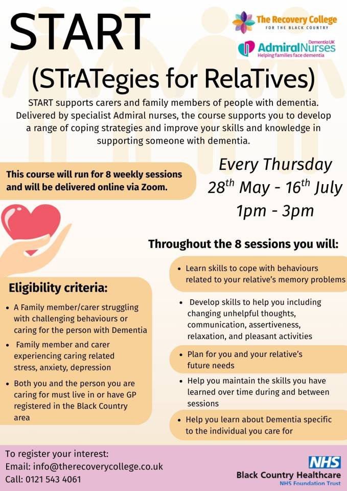 We are pleased to share the launch of a new course in partnership with Admiral Nurses... the START (STrATegies for Relatives) supports carers and family members of people with dementia.