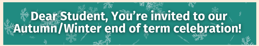 We are delighted to invite you to our Autumn/Winter End of Term Celebration, where we will be celebrating your successes and showcasing all your great work. This end of term celebration will be inspired by all things Winter. So please be prepared for a Wintery Quiz, an end of year reflection activity and maybe a mince pie! (Or two). There will also be guest speakers and our 10 Year Anniversary artwork Grand Reveal.